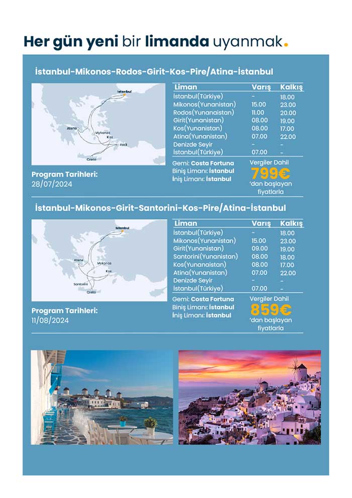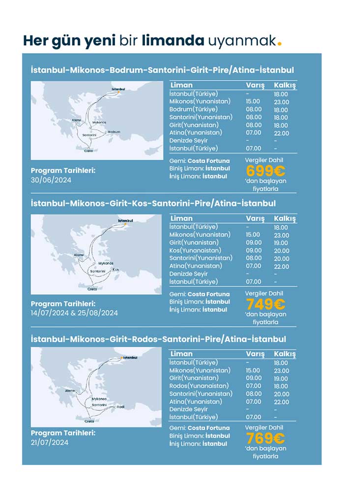 Costa ile İstanbul hareketli Yunan Adaları